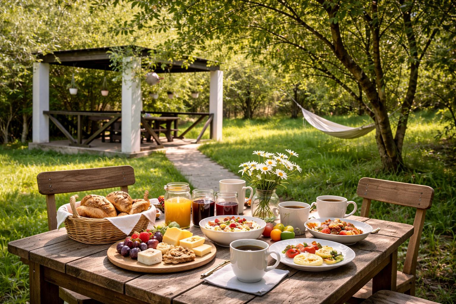 A quiet retreat surrounded by orchard, fresh air and stillness.