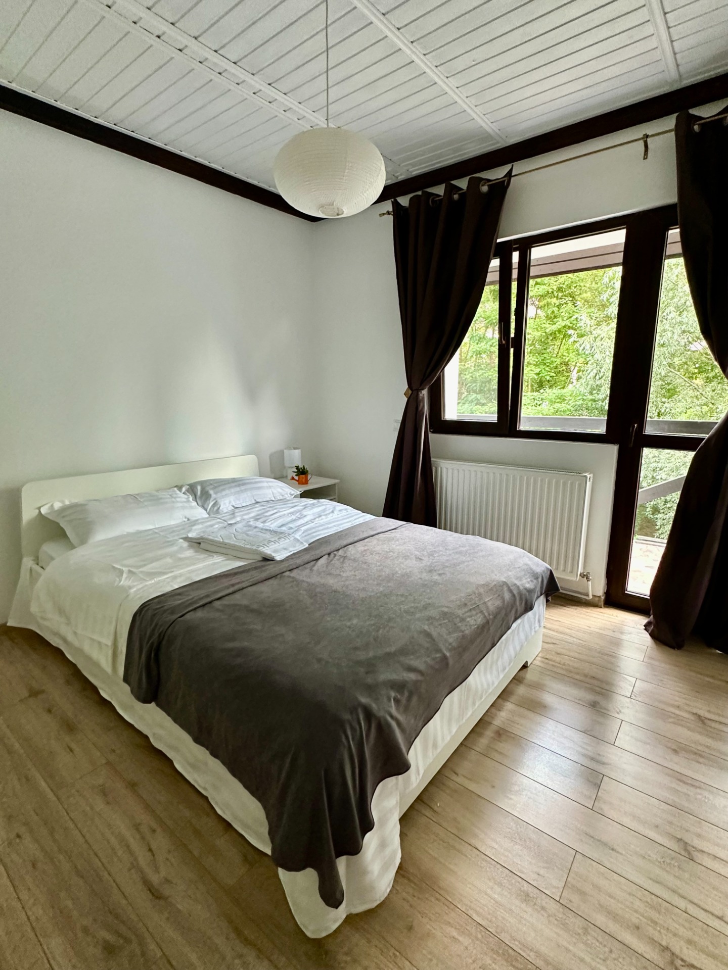 Spread across four levels, the chalet offers a mix of private rooms and attic apartments, with generous shared spaces for living, cooking, and simply being.